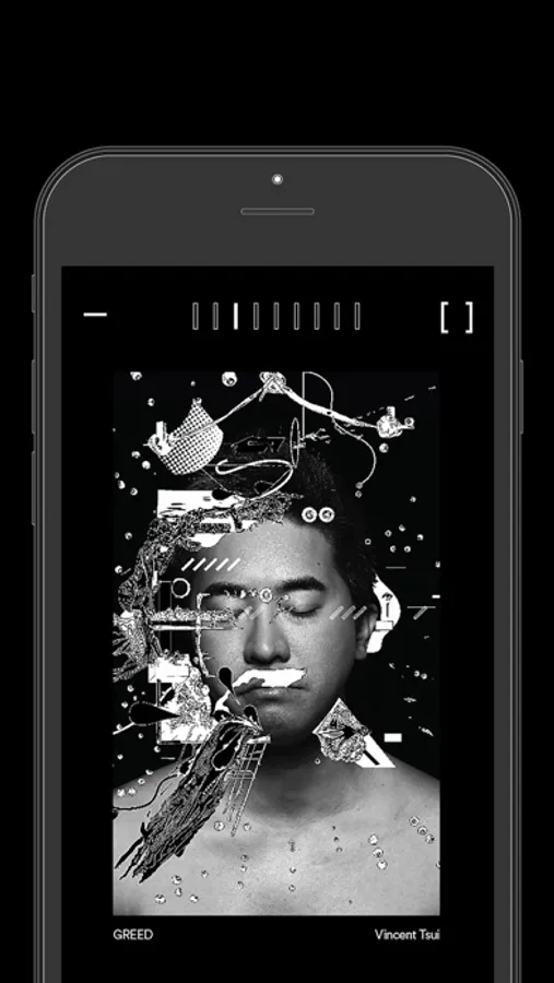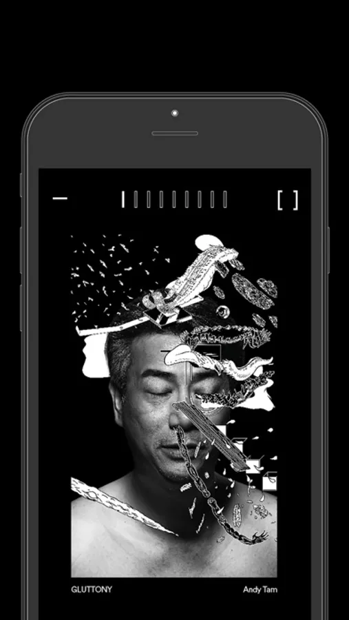 Twenty years later, Tommy together with Li Chi Tak, Ringo Tang and XCEPT create a series of large-scale woodcut prints New 9 Sins on the same theme. Tommy invited 8 friends including Anthony Wong, MC Yan, Keith Lam, Peter Wong, Vincent Tsui, Abby Lai, Andy Tam and Ringo Tang to participate in the photo-taking. They become the subjects of the artworks accompanied by random illustrations and augmented reality effect, creating a more captivating visual.