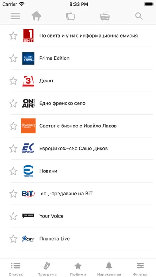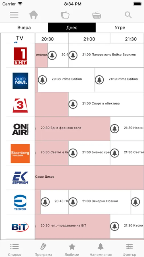 Приложение за гледане на телевизия и слушане на радио, възможност за гледане на предишни предавания, програма на телевизиите, напоняния за предстоящи предавания.
