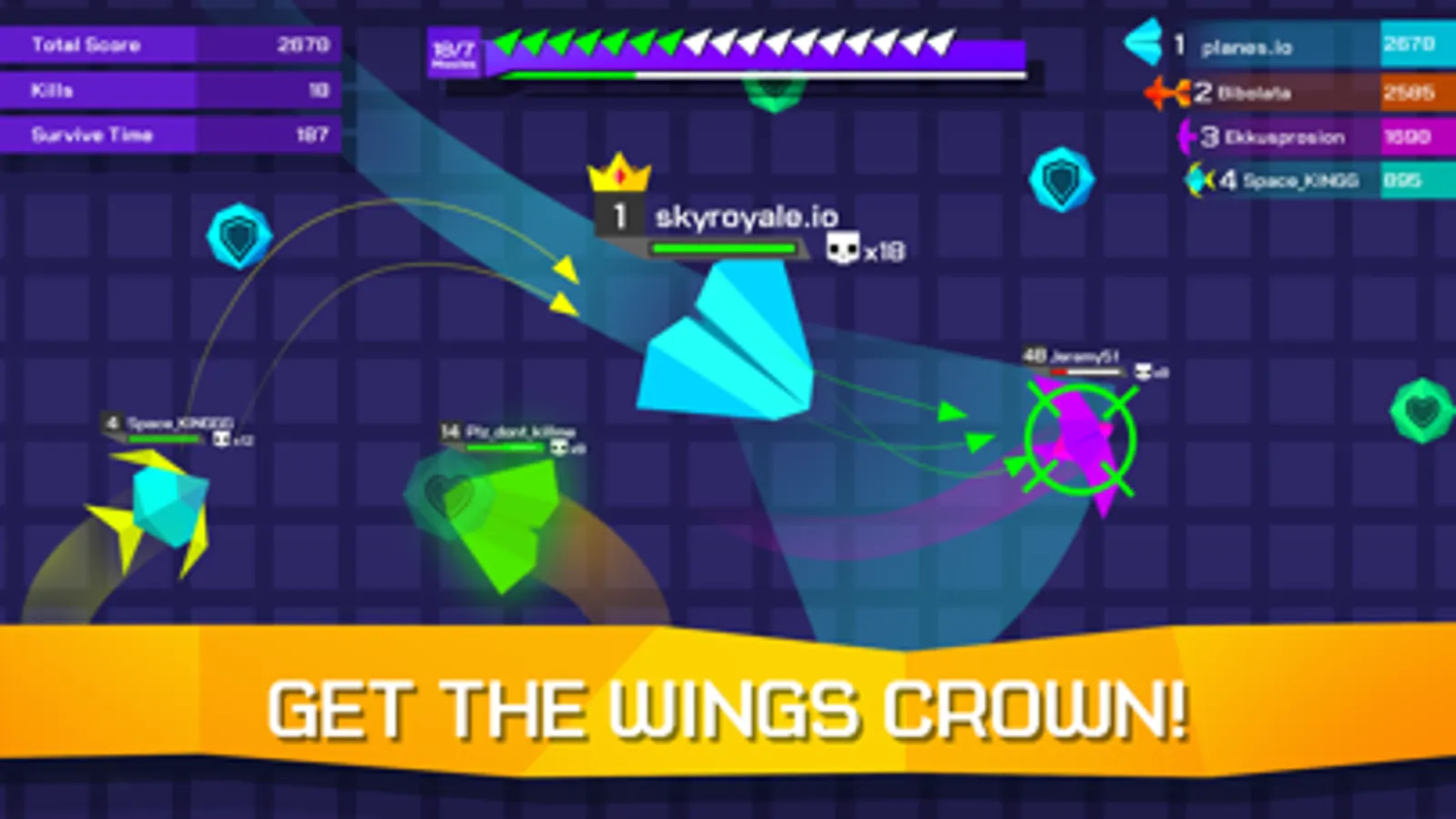 SKY ROYALE.IO GAME WITH EASY CONTROLS! Target and send your missiles with a tap of a button to other war planes to destroy them.