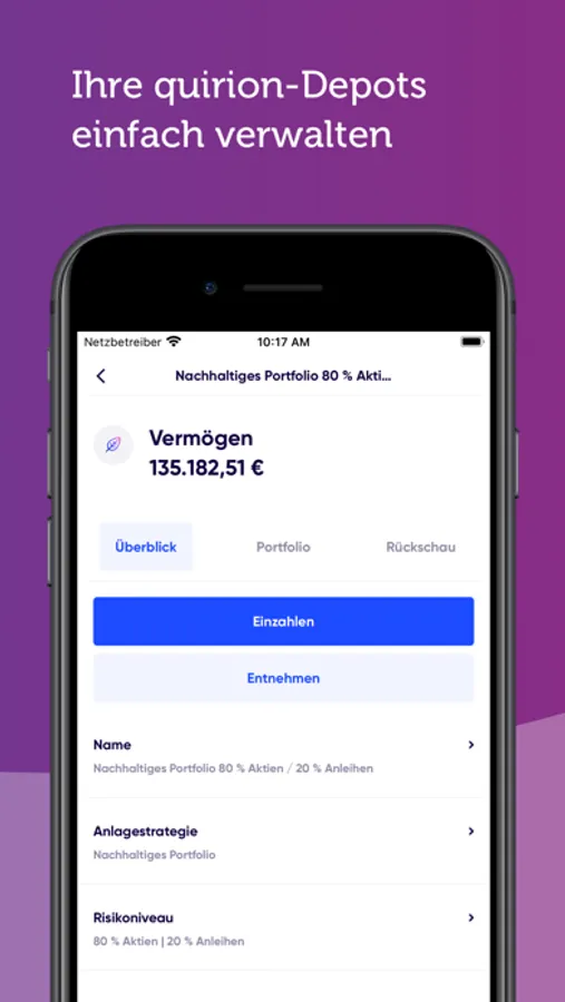 • Sie können Ihre Geldanlage unkompliziert in der App verwalten und beispielsweise Ihre Portfolio-Zusammensetzung oder Vermögensentwicklung verfolgen.