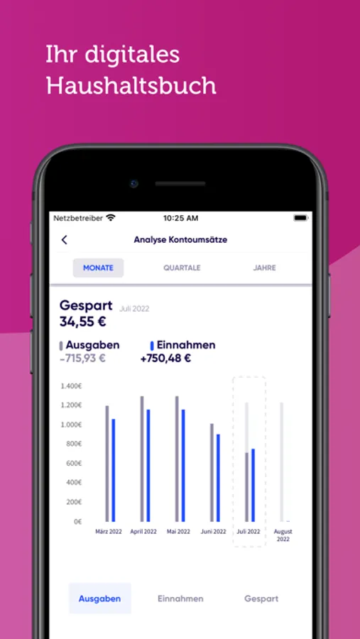 • Wie entwickeln sich Ihre Einnahmen und Ausgaben? Wofür geben Sie Geld aus? Wo und wie viel können Sie sparen? Ist Ihr Wertpapierdepot optimal aufgestellt? Ein digitales Haushaltsbuch liefert hierzu wertvolle Einblicke.