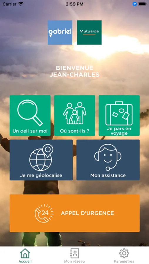 - Gabriel est une application pour vous venir en aide rapidement : pensez à laisser la géolocalisation de votre smartphone et de votre appli active.