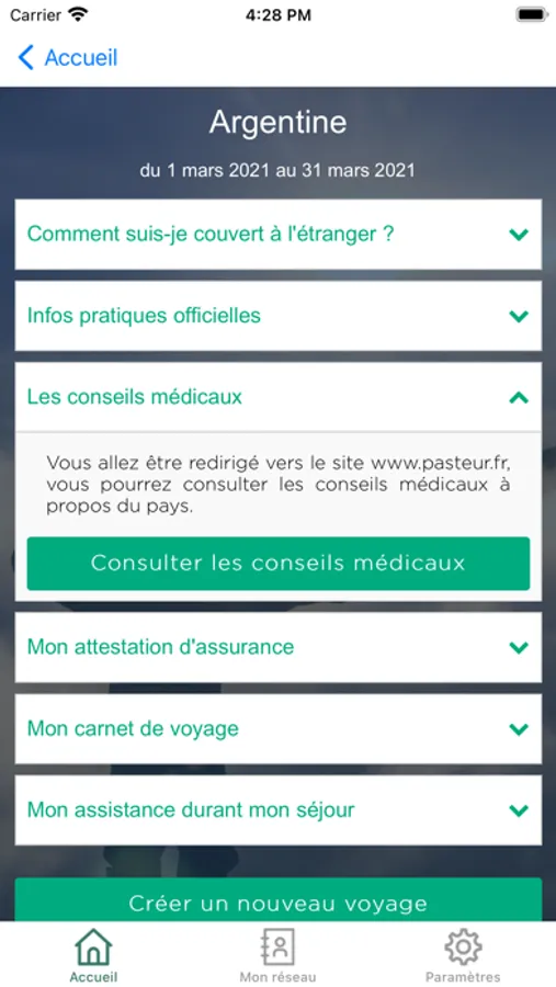 - « Je pars en voyage » : retrouvez les détails de votre couverture à l’étranger ainsi que de multiples conseils. Grâce à Votre carnet de voyage, partagez des photos et des messages qui font toujours plaisir à vos proches !