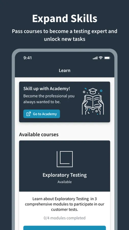 * Complete Onboarding Courses and unlock testing opportunities