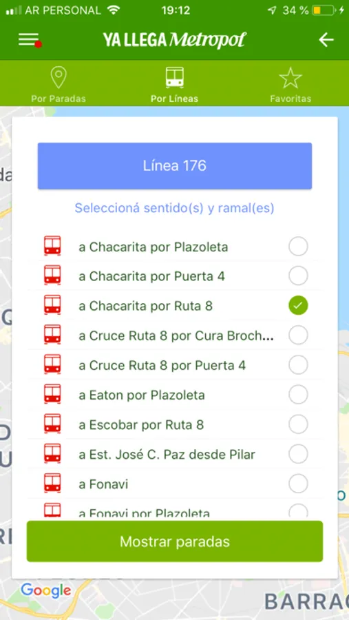 Ubicación de paradas.