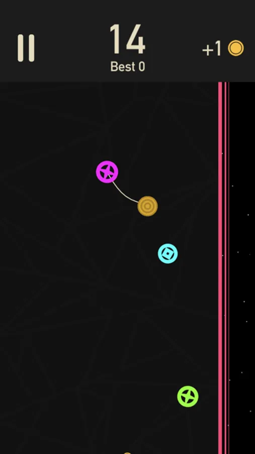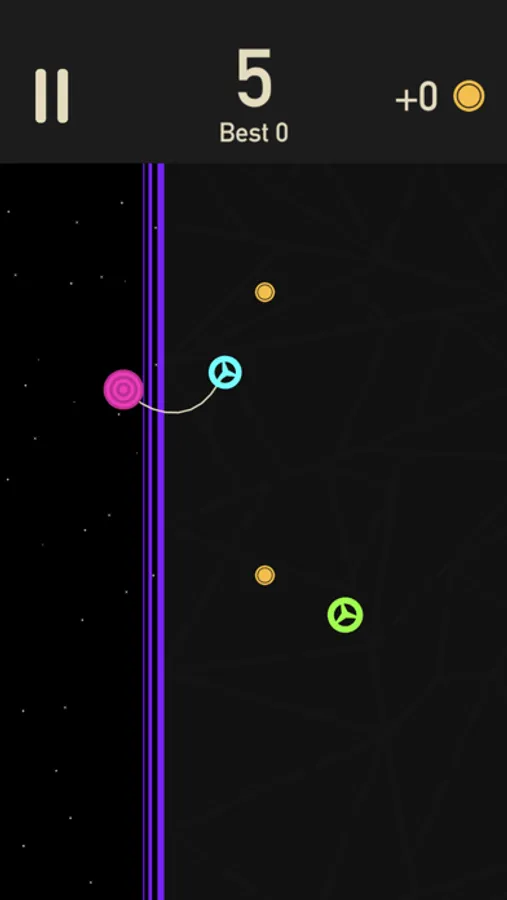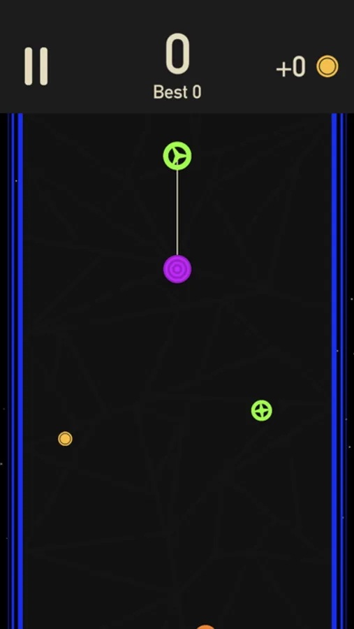 Touch anywhere on the screen to attach to a nearby peg. Try to get as far as you can without going off screen. Collect coins as you go to buy new ball designs! Use the leaderboard and compete with your friends.