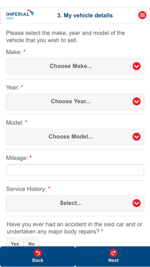 Self Service valuation app for customers of the Imperial Group. Allows Imperial customers to submit their vehicles remotely.
