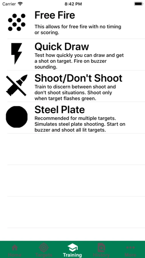 - Choose from several different training scenarios such as quick draw and shoot/don’t shoot.