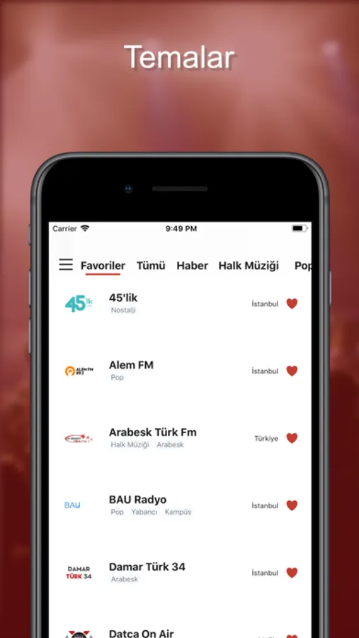 * Kategorilere göre düzenlenmiş radyo kanalları,