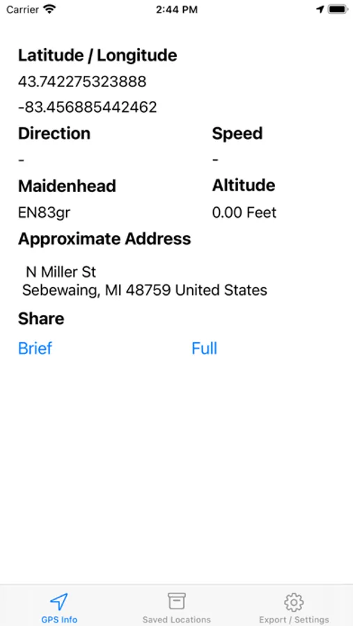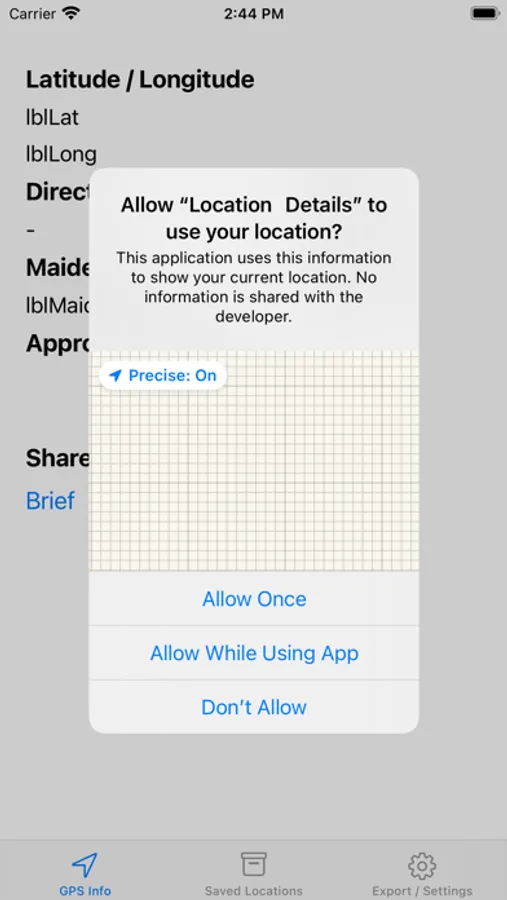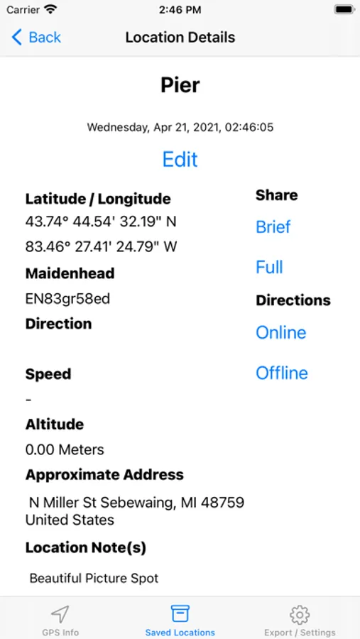 • Brief - This button simply shares the Apple (or if chosen Google or HERE) map link.