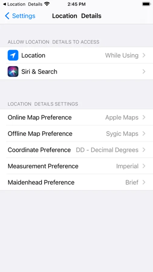 • Detailed - This button shares your current location with GPS coordinates (latitude and longitude) along with approximate address and the Apple (or if chosen Google or HERE) map link.