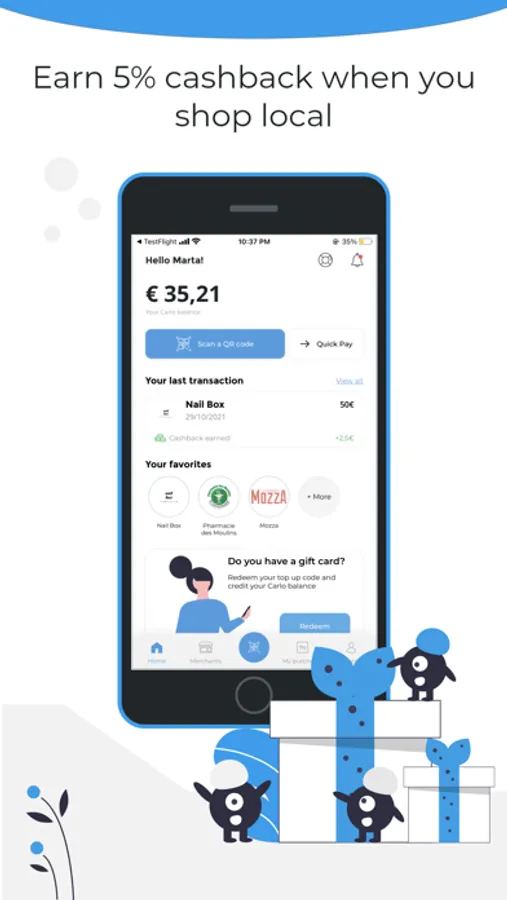 Join thousands of satisfied users and download the Carlo app today, completing registration in just under 2 minutes. Say goodbye to cash and cards and embrace the convenience of QR code payments, earning an incredible 5% cashback straight into your virtual wallet. Best of all, you can accumulate cashback and spend it at any participating local business in your city.