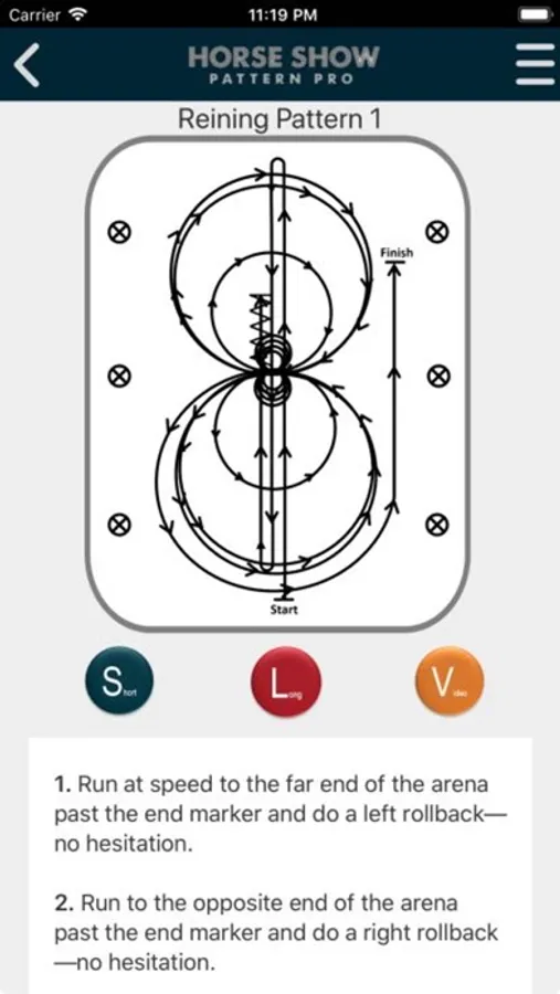 Horse Show Pattern Pro is your go to tool at the horse show to find, learn, and memorize your pattern. Horse Show Pattern Pro is a complete index of show pattern for AQHA, APHA, NRHA, and NSBA classes. Patterns include Western Riding, Reining, Ranch Horse, Working Cow Horse, Versatility Ranch Horse Reining, and Versatility Ranch Horse Riding. All patterns include detailed diagrams as well as written instructions. Reining patterns include videos of the patterns being ridden in competition to help with memorization.