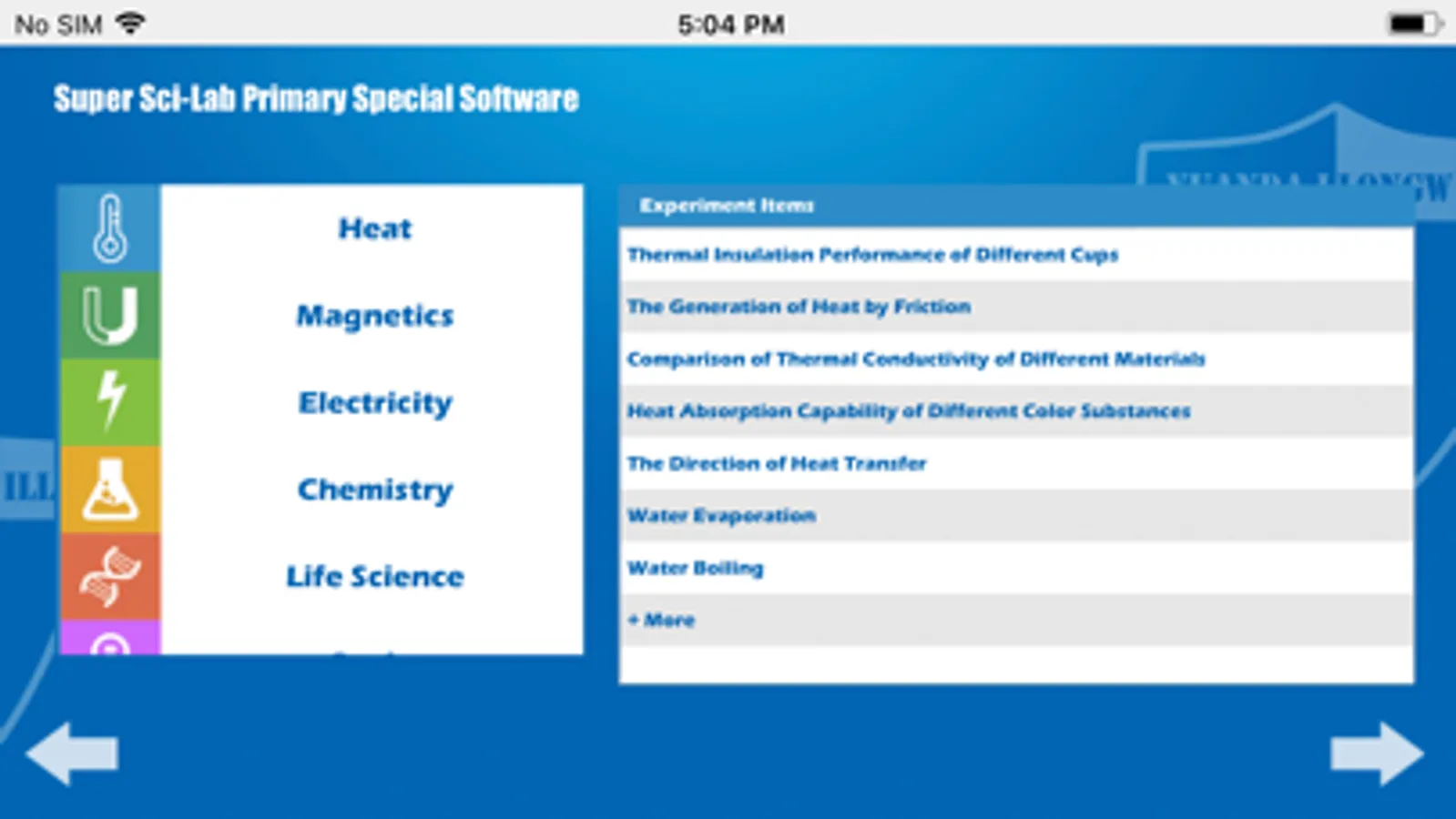 The special software is a software package composed of multiple independent software interfaces. Each independent software interface corresponds to a scientific experiment or inquiry project. According to project requirements, special software presets the corresponding operation steps and sequence. The current list of specific items for specific software is as follows:
