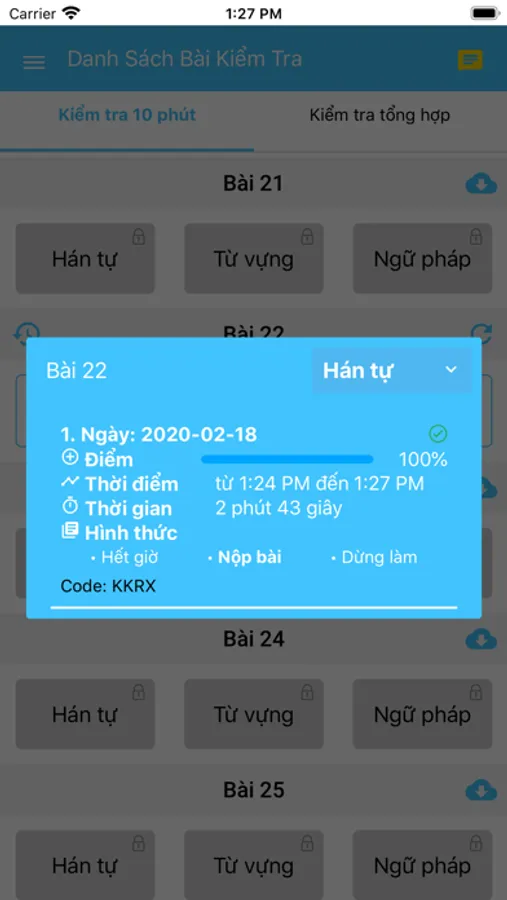 Để có thể luyện tập bài kiểm tra mười phút hoặc bài kiểm tra tổng hợp, học viên cần nhận mật khẩu từ người quản lý của hệ thống Honkidenihongo.