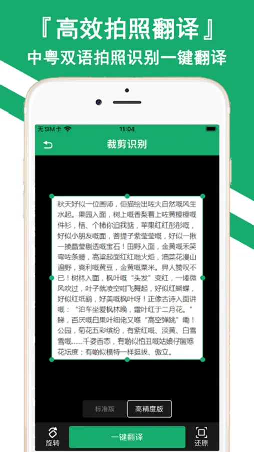 拍照翻译:拍照识别中文/粤语,图片文字识别准确率高达99%!