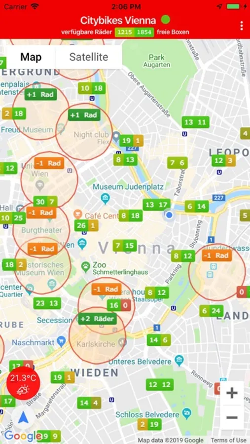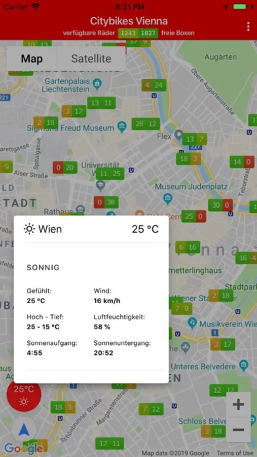 This app provides you with current data on available bikes and available boxes in your area. Just take a look at the app and find everything at a glance:
