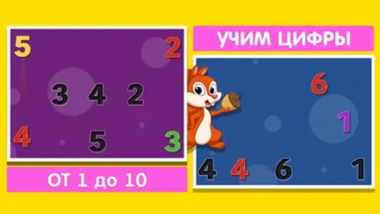 1) Изучение цифр. Состоит из одиннадцати уровней, в каждом из которых двигающиеся цифры надо переместить в соответствующее пространство. При успешном соотнесении диктор озвучивает цифру.