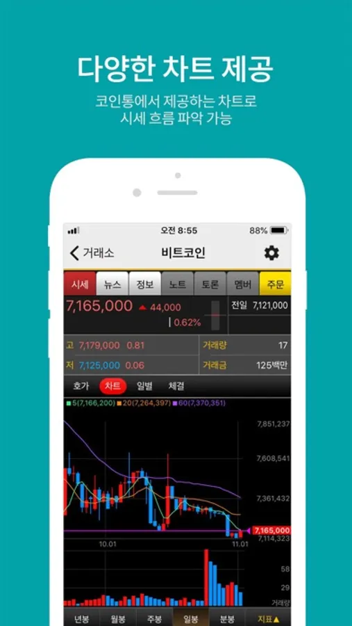 - 실시간 가격 알림으로 24시간 시세 모니터링