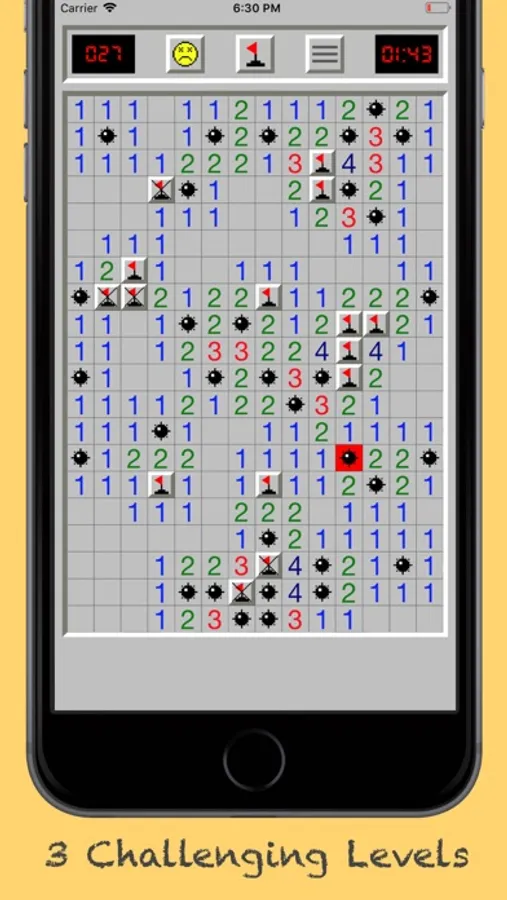Minesweeper is a single-player puzzle game. The objective of the game is to clear a rectangular board containing hidden "mines" or bombs without detonating any of them, with help from clues about the number of neighboring mines in each field.
