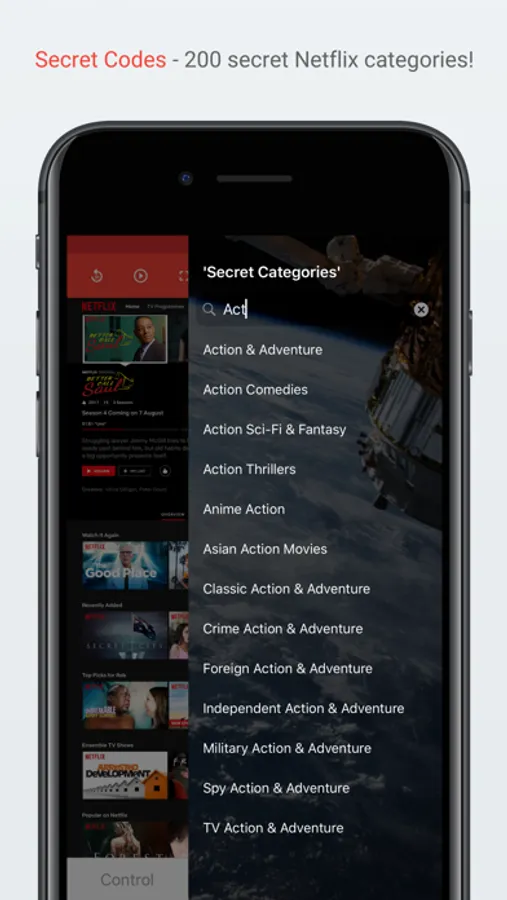 The Netflix browsing functionality even includes easy access to Neflix's 'secret' content codes to make it even easier to find something new to watch.