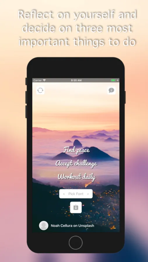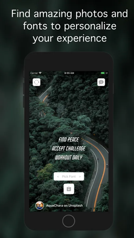 Explore amazing photos provided by Unsplash and set them as wallpapers. Personalize experience with beautiful hand selected fonts.