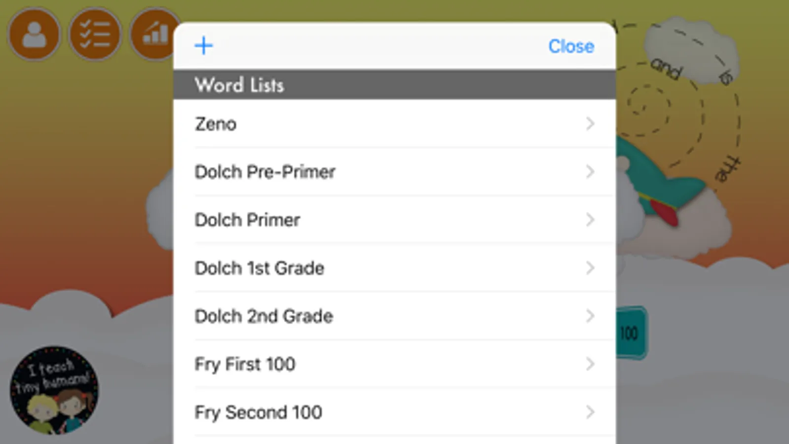 Tiny Human Sky Writing helps your student or child master sight words and reading fundamentals. It contains all the sight words from several high frequency reading lists, including Dolch, Fry and Zeno. Additionally you can create your own word lists and add specific words your child is working on. Children will have fun learning to read and recognize sight words as they are engaged with airplanes, helicopters and clouds that soar through the air.