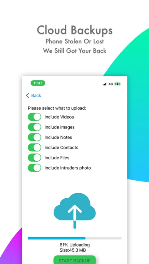 Secret Vault can back up all your data on Cloud. You can create custom multiple backups based on Time.