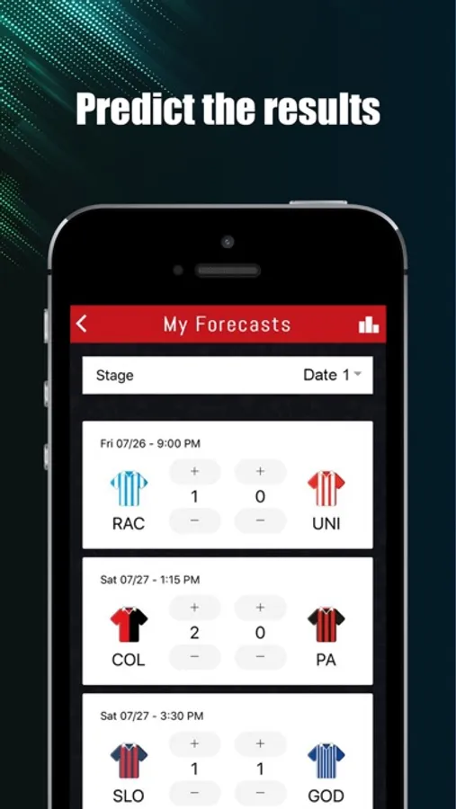 - Complete the results of the matches until 15 minutes before the start of each match. According to the successes and coincidences you will add points.