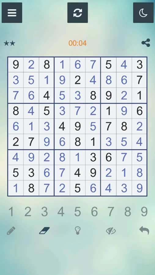 Choose any level you want. Play simpler levels to exercise your brain or try expert levels to make your mind work. There are millions of Sudoku puzzles of 4 difficulties: easy, medium, difficult and expert.