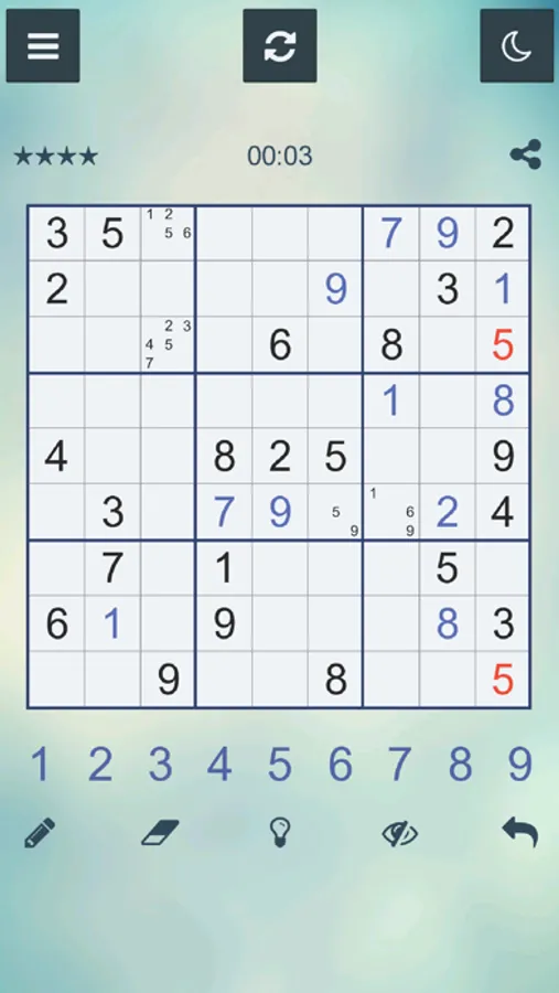 The sudoku app is designed with excellent features to make the game easier for you: tracks, automated controls and highlighted duplicates. You can use them or take the challenge manually without help. It depends on what you prefer!