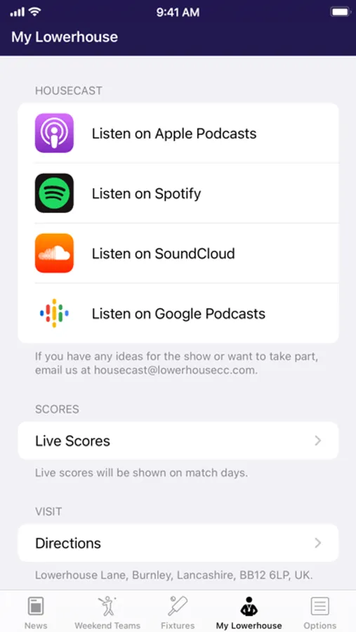 Get real-time updates with live scores, news, fixtures and more, listen to the Housecast podcast, see Lowerhouse Draw results, renew your club membership, check upcoming matches, weekend teams, club events and more, all with just a tap.