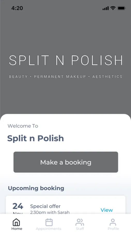 The Split n Polish app makes booking your appointments and managing your loyalty points even easier. You're just a few taps away from feeling good and looking great!