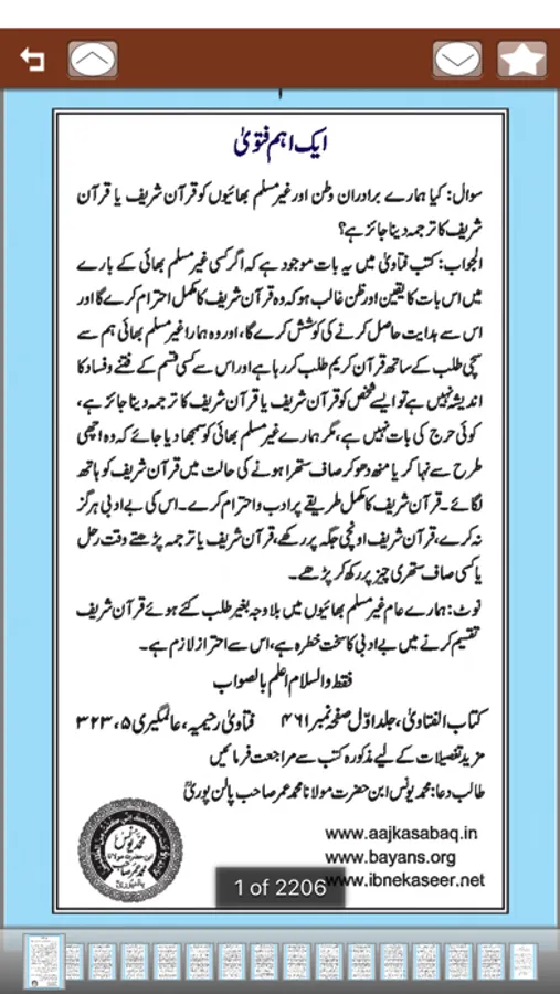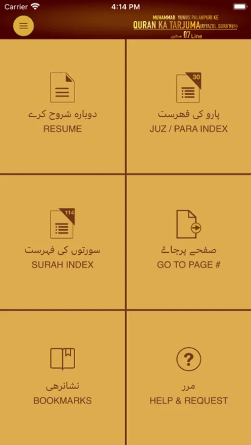 Riyazul-Quran 7 Line (Urdu Translation of Holy Quran by Hazrat Maulana Muhammad Yunus Sahab Palanpuri DB) .In which the Quranic texts and translations are written in a large font size, so that the persons with weak eye vision can also easily read it. Furthermore, Every Surah is beautified with Bismillah written in different calligraphic styles.