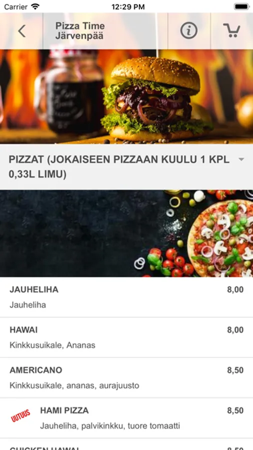PIZZA TIME JÄRVENPÄÄ - sovellus. Tilaa syötävää helposti suvelluksemme kautta kotiinkuljetuksella. Tarjontaamme kuuluvat suosituimmat, pizzat, erikoispizzat, salaatit, burgerit, kebabit, kanakebabit, tortillat / wrapit ja juomat.