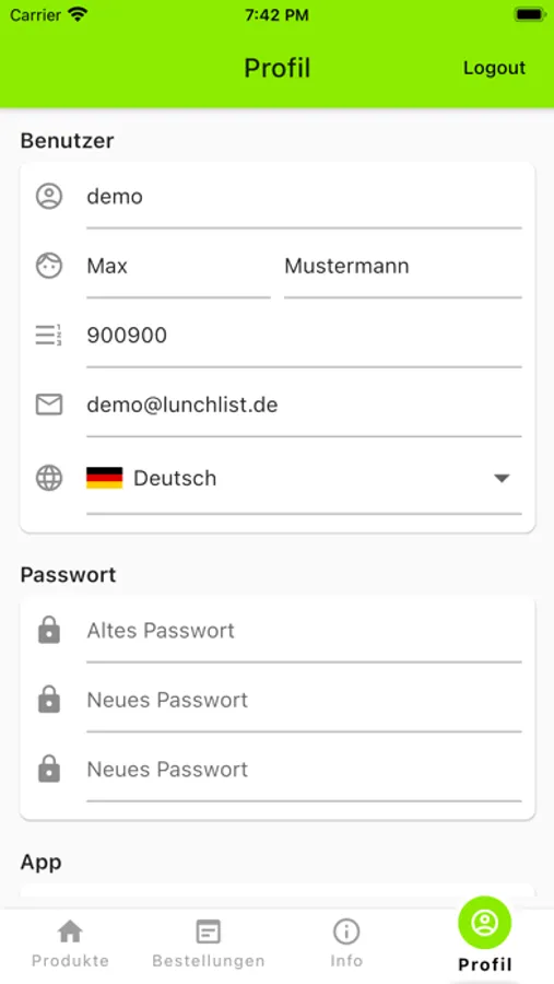 Zur Verwendung der App muss das Unternehmen/die Organisation bei lunchlist® angemeldet sein. Zudem wird für jeden Benutzer ein Account benötigt.