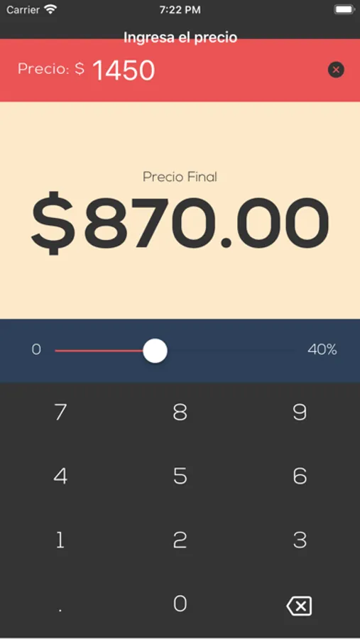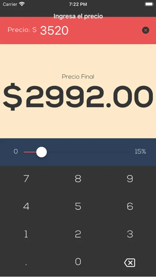 Calcula el descuento del producto o servicio que te interesa de manera fácil y rápida, solo usa la barra de porcentaje para seleccionar el deseado, ingresa la cantidad y mientras lo haces se va mostrando el precio final.