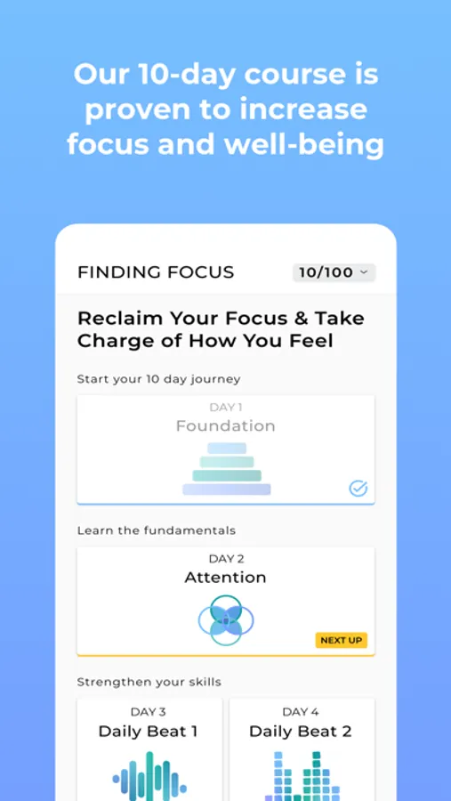 As the world gets more and more distracted, training your ability to focus can set you apart. Finding Focus helps you get more done with less stress. Created by scientists at UT Austin. Backed by five years of university research.