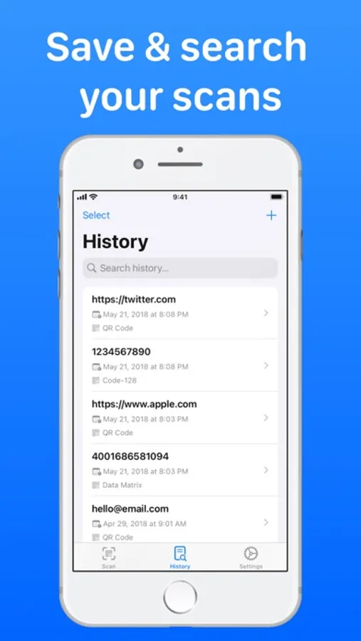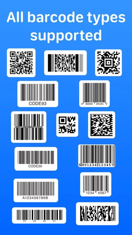 - Scan 20+ different types of QR Codes and Barcodes (see below for full list)