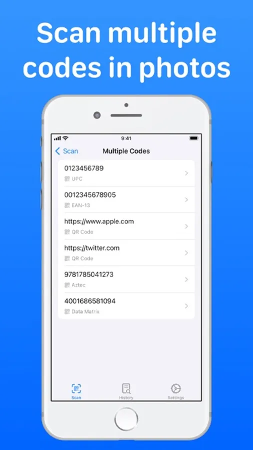 - Scan codes from photos in your photo library (including multiple codes per photo)