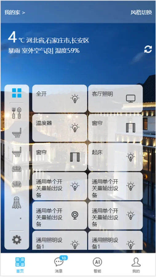 2、通过App对主控器的控制,可以实现对照明、空调、电视、窗帘、等电器设备的控制。