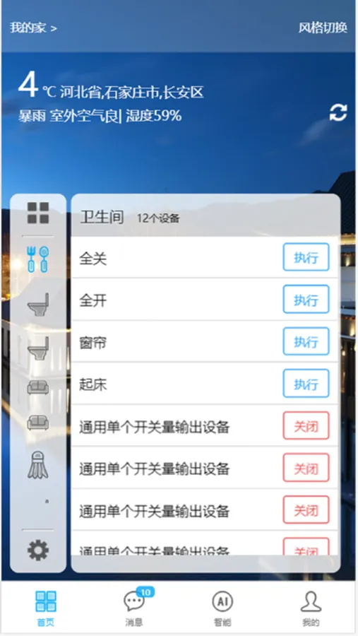 5、App里的“智能”页面,可以组建“手工”、“定时”、“按天气条件”场景,实现智能化批量控制。