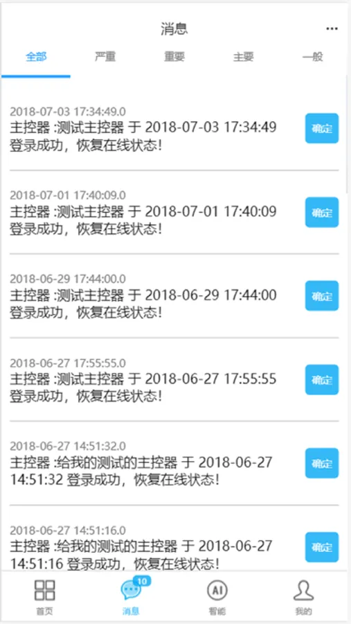 4、App里的“消息”页面,提供查看主控器在线情况。