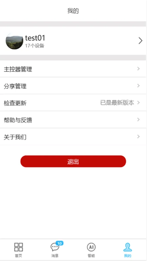 5、App里的“我的”页面,实现“主控器管理”、“分享管理”等功能。