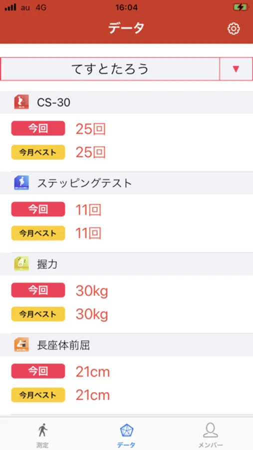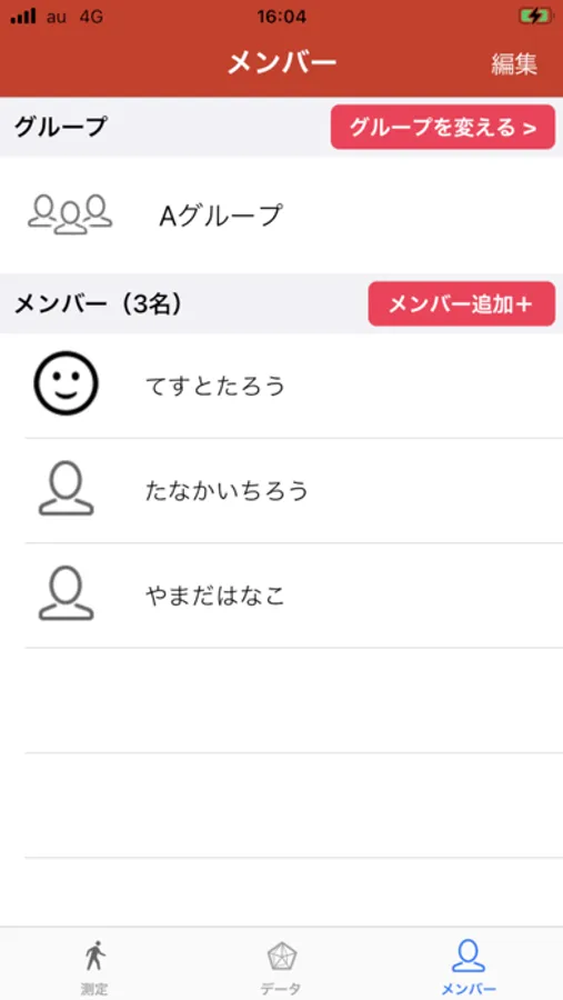 体力・運動能力測定をスマートフォンで測定したり、複数人の測定のためのメンバー管理ができるアプリです。