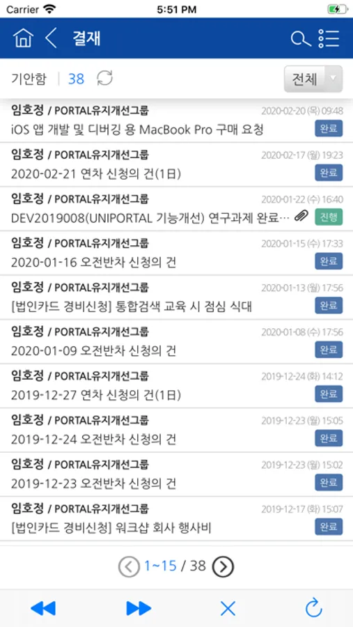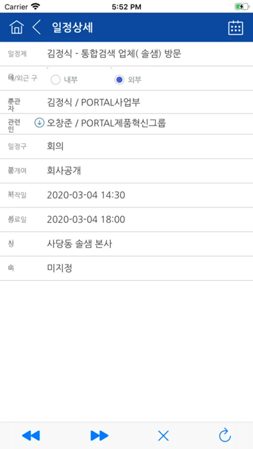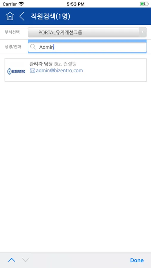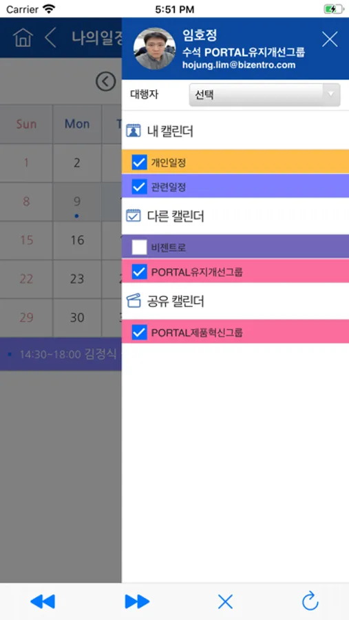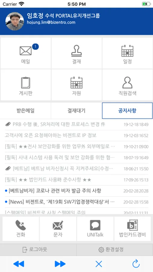 • UNIPORTALS의 주요기능을 모바일로 모두 지원 - 모바일 연동기능(포탈, 메일, 결재, 협업, 일정관리, 게시판, 임직원정보)으로 업무별 접근 용이성 확보