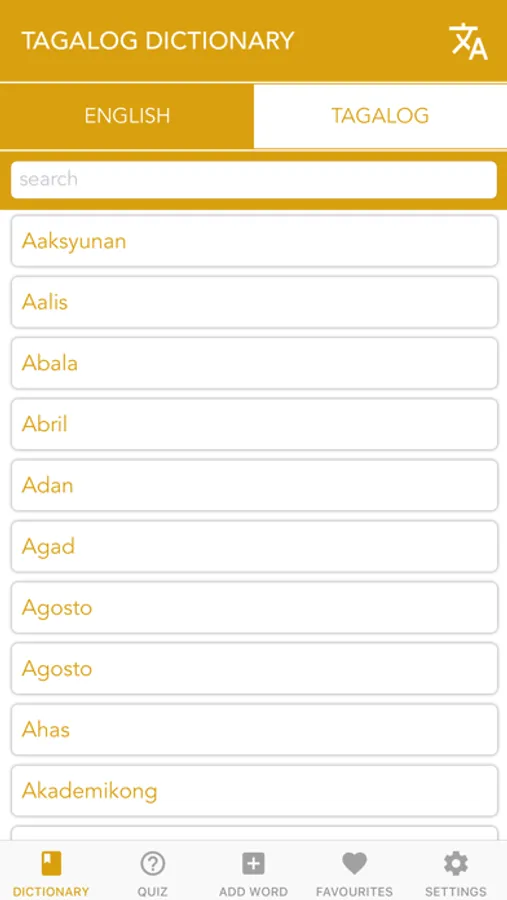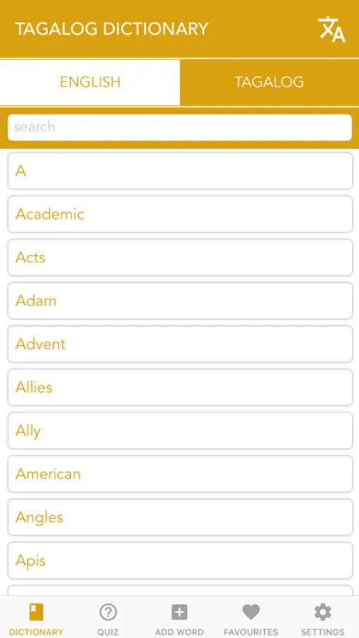 Tagalog dictionary app designed to help English speakers to learn and improve their English language skills.