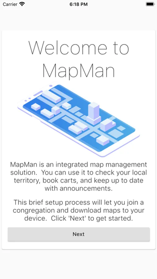 MapMan is an application to help you access the territory maps for your local congregations, and also book carts (where enabled). It ensures you have up to date maps on your device.