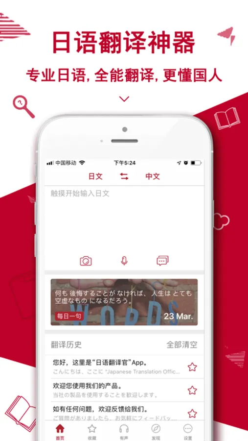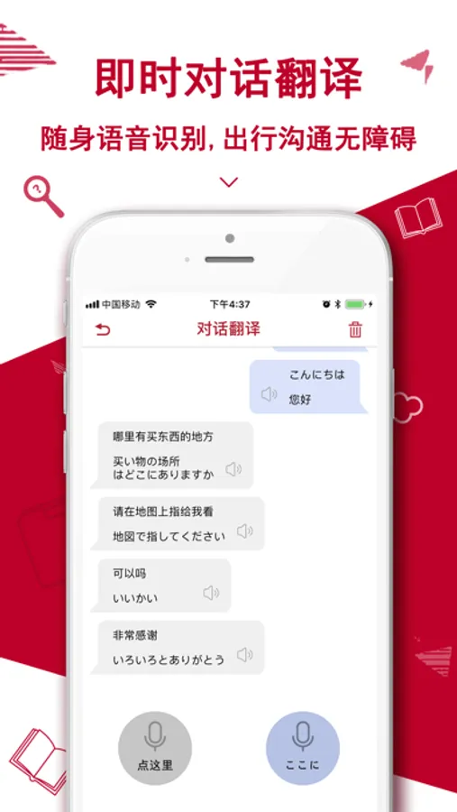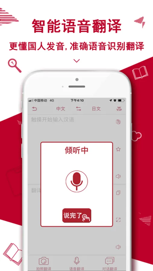 4,语音翻译:最新人工智能技术,高分辨率人声识别转为文字翻译!日本旅游/日语学习必备翻译助手。