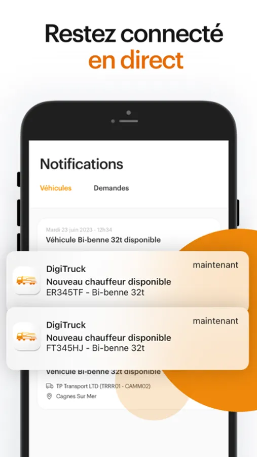 + Optimisez vos plannings avec DigiTruck : l'application vous prévient lorsqu'un chauffeur a terminé son transport. Vous pouvez donc lui proposer une nouvelle mission.